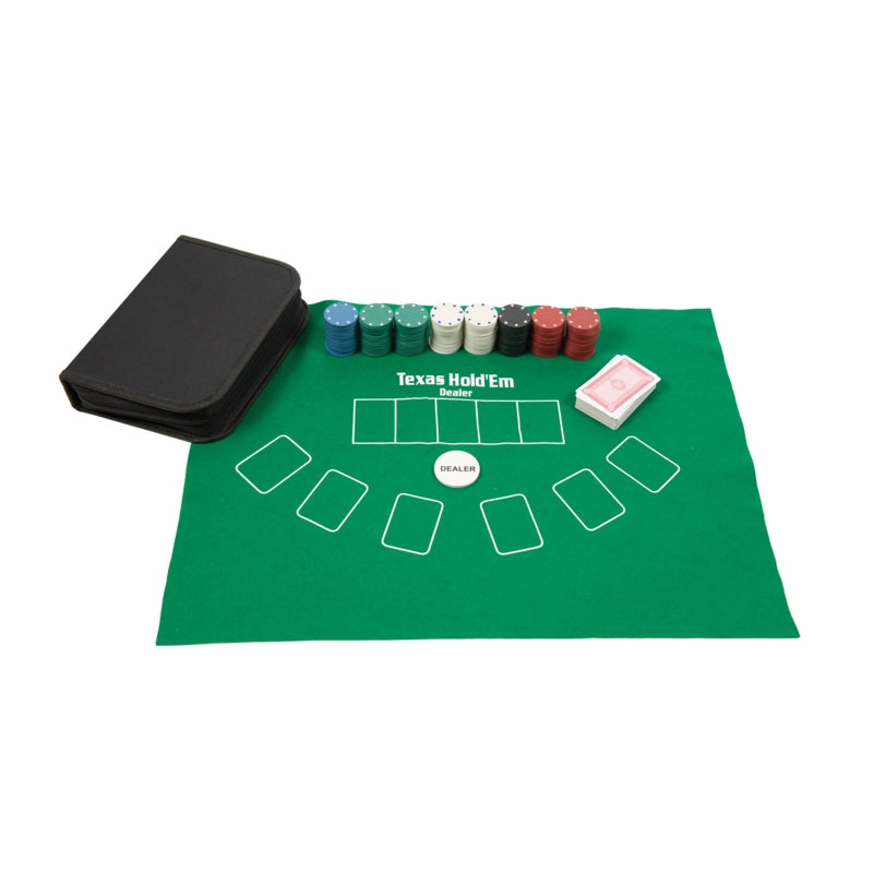 Play your favourite Poker Games wherever you like. The high-quality Poker King set is a full Poker game contained in a handy carrying case. Just find a suitable surface, unpack and let the game begin. Each set contains: a pack of cards, 160 gambling chips, poker mat and a handy carry case.