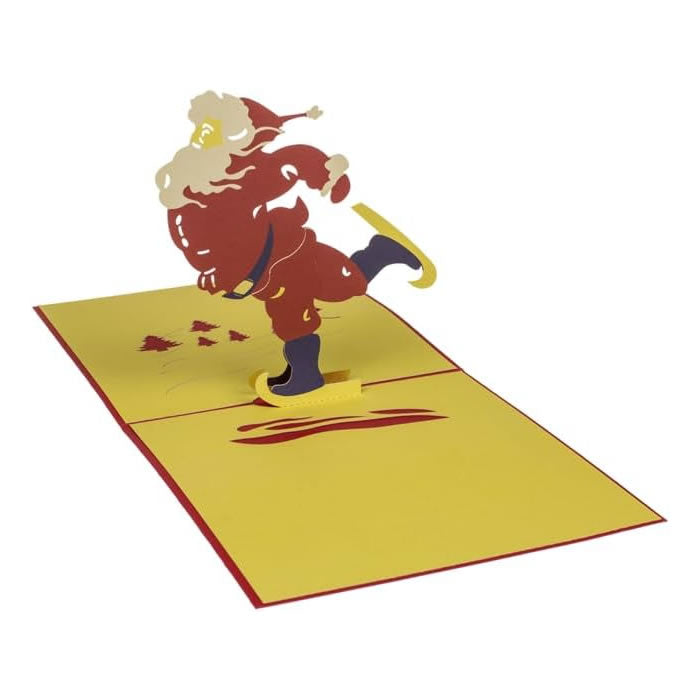 A beautifully designed card with a stunning pop-up 3D Skiing Santa. The card makes a perfect Christmas ornament instead of the usual standing card, and is the perfect keepsake gift to share with a beloved recipient, wishing them a joyful Merry Christmas.