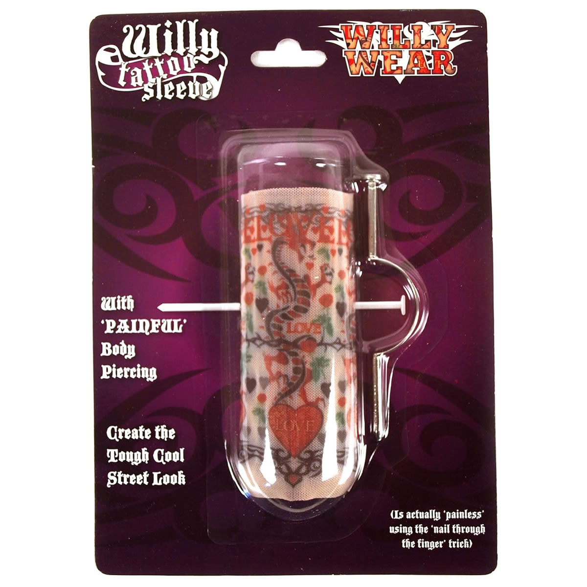 The just for laughs Willy Tattoo Sleeve is a unique addition to any man's wardrobe - of course! It features a bold, fantasy-inspired design and even includes a body piercing for added edge. Give your best friend a stylish new look with this perfect gift for him.