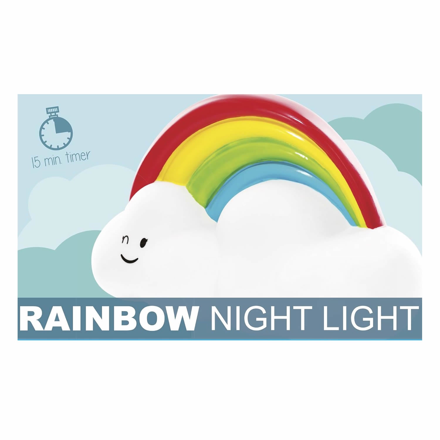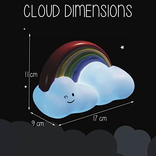 Battery powered Rainbow Cloud Night Light ideal for a child's bedroom. Fitted with a 15 minute timer so no need to remember to turn it off.