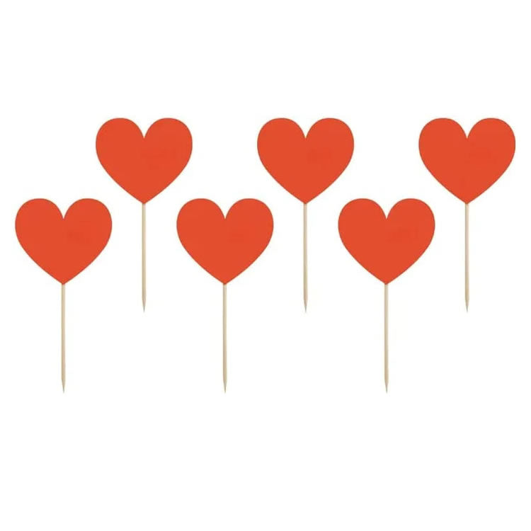 Red Heart Cupcake Toppers. 11cm height. 6 per pack