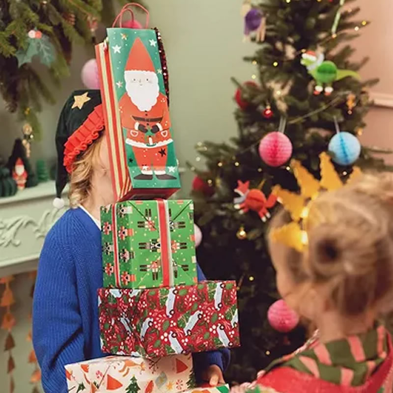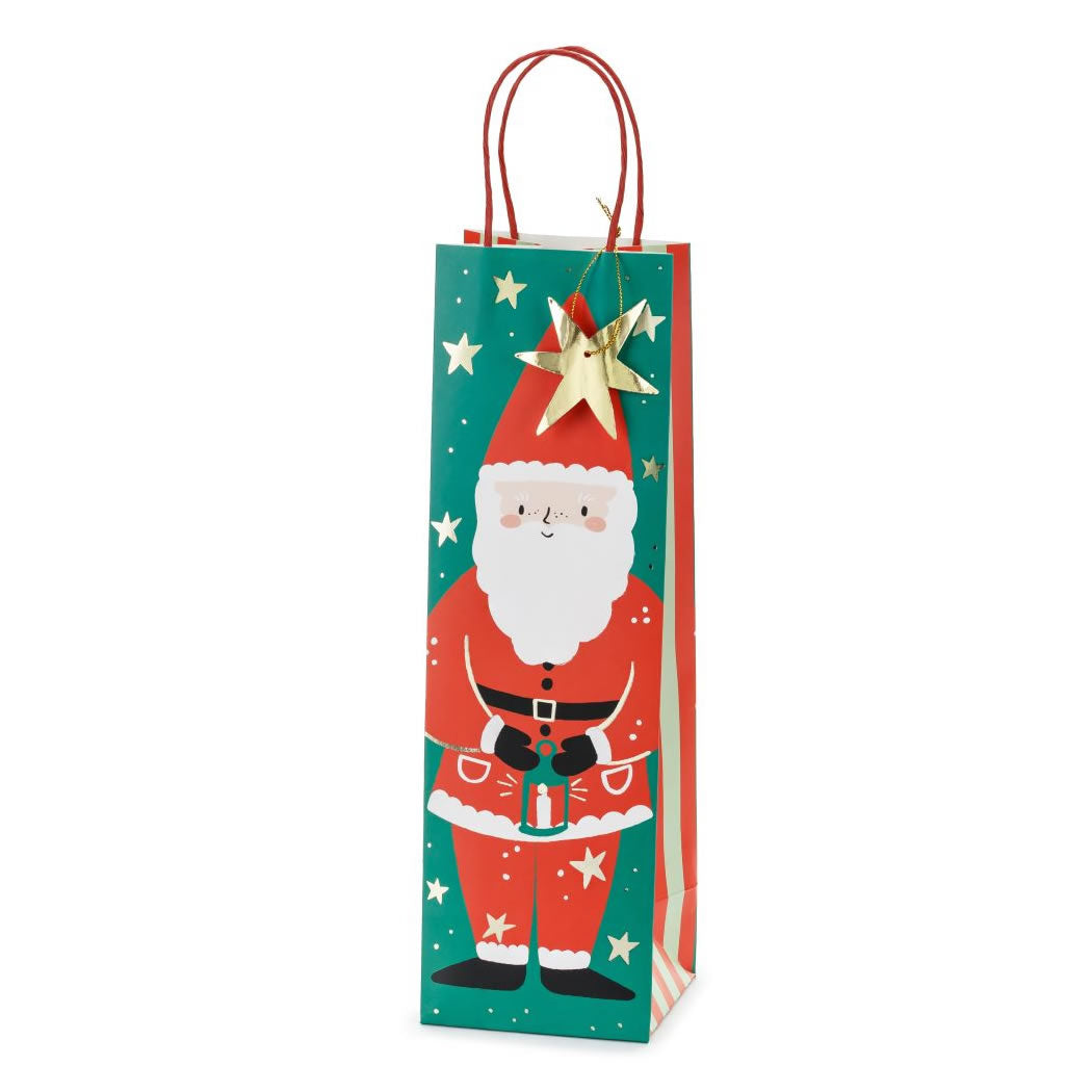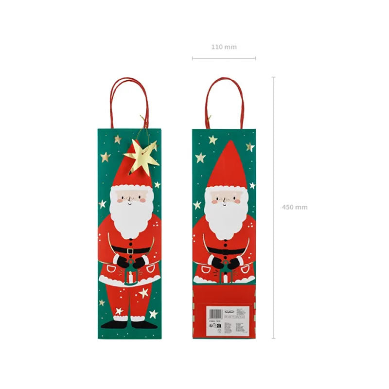 This festive gift bag features a jolly Santa Claus figure adorned with stars. Measuring 11 cm wide, 36 cm tall, and 10 cm deep, this bag offers ample space to hold gifts or treats. Its sturdy handles make it easy to carry and present. Whether you're giving or receiving, this charming gift bag will add a touch of magic to your celebrations.