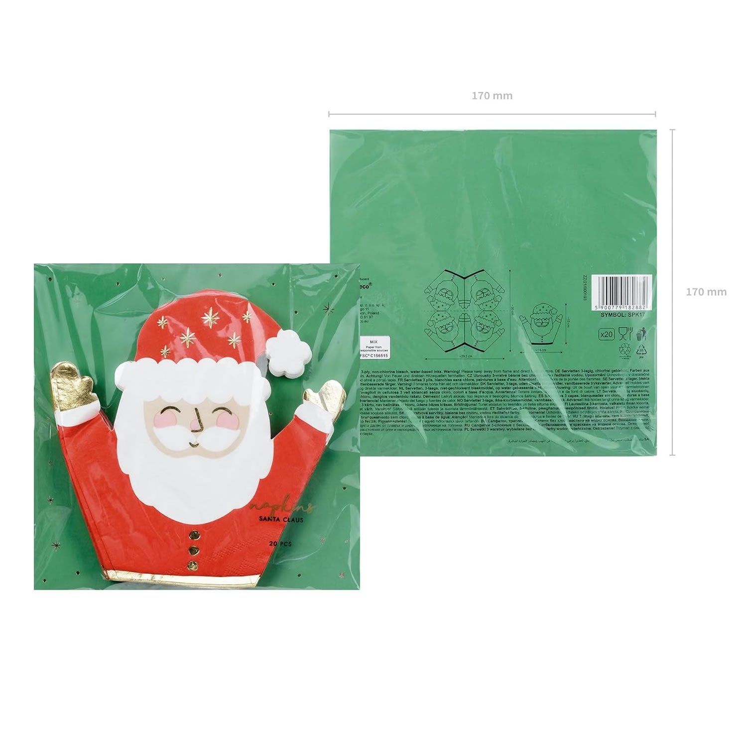 Make your table stand out this Christmas with these fun Santa Claus paper napkins! The napkins feature a cool Santa Claus design with detailed gold foil imprinting. They are perfect for any Christmas buffets/meals you have planned this Christmas.