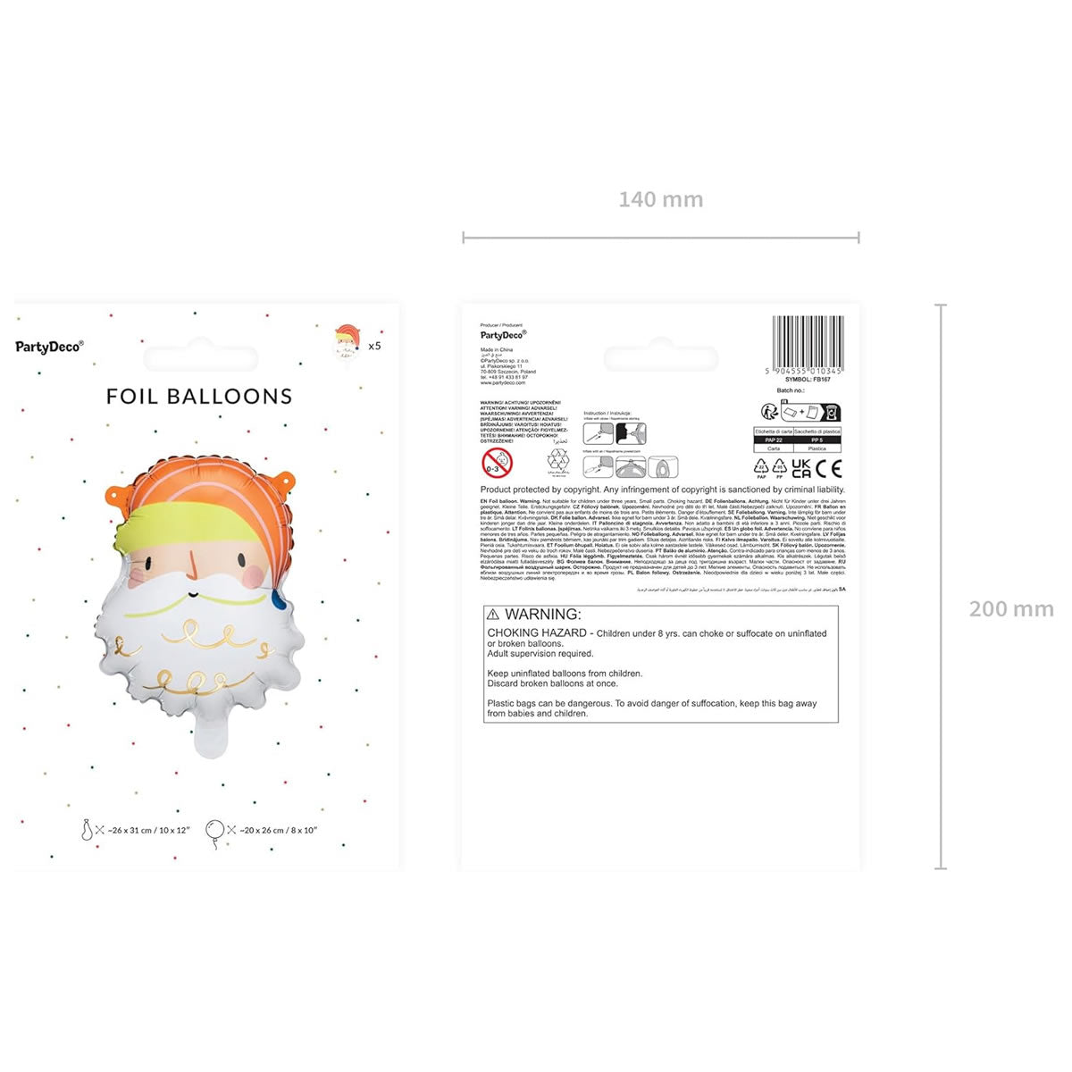 Santa Head Foil Balloons, Pack of 5