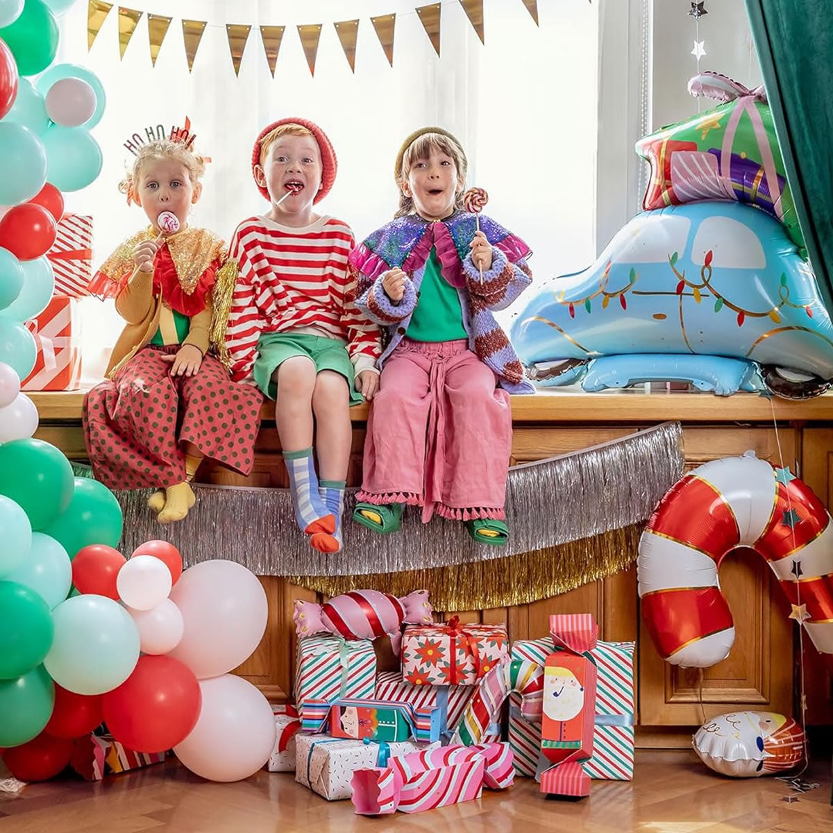 These whimsical foil balloons feature a cheerful Santa Claus head design, perfect for adding a touch of holiday cheer to any celebration. Perfect for Christmas parties, or any festive occasion, these balloons can be used as a centrepiece, photo prop, or decorative accent.