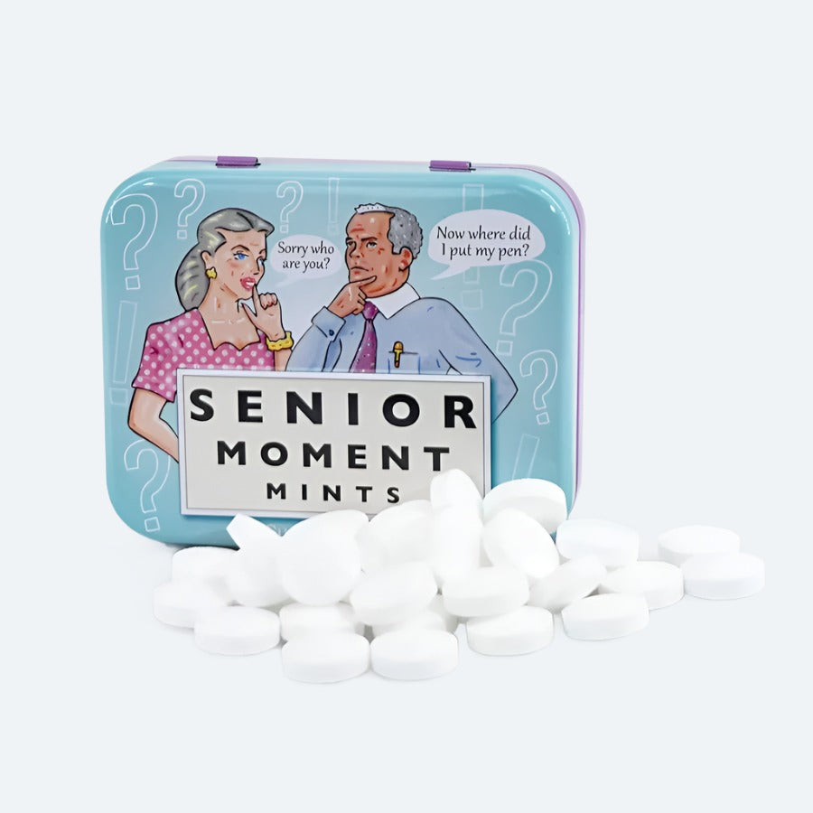 A perfect gift for anyone prone to senior moments! Fun novelty gift for offices. Pocket sized tin for laughter on the go.