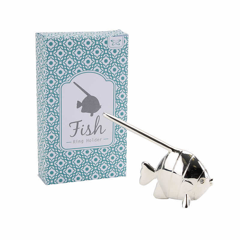 Enhance the organisation of your kitchen or dressing table with this Silver Fish Ring Holder. Perfect for kitchen worktops or dressing tables, this holder features a padded felt base for surface protection. Packaged in a colourful gift box, this ring holder makes for an ideal gift option.