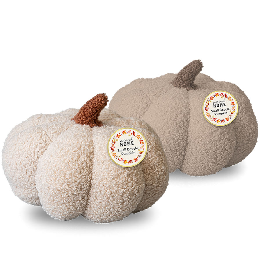 Enhance the autumn aesthetic in homes with these pumpkin cushions, perfect for both Halloween-themed décor and year-round embellishment. Each cushion boasts a luxurious boucle fabric and a contrasting colour stalk for added charm.