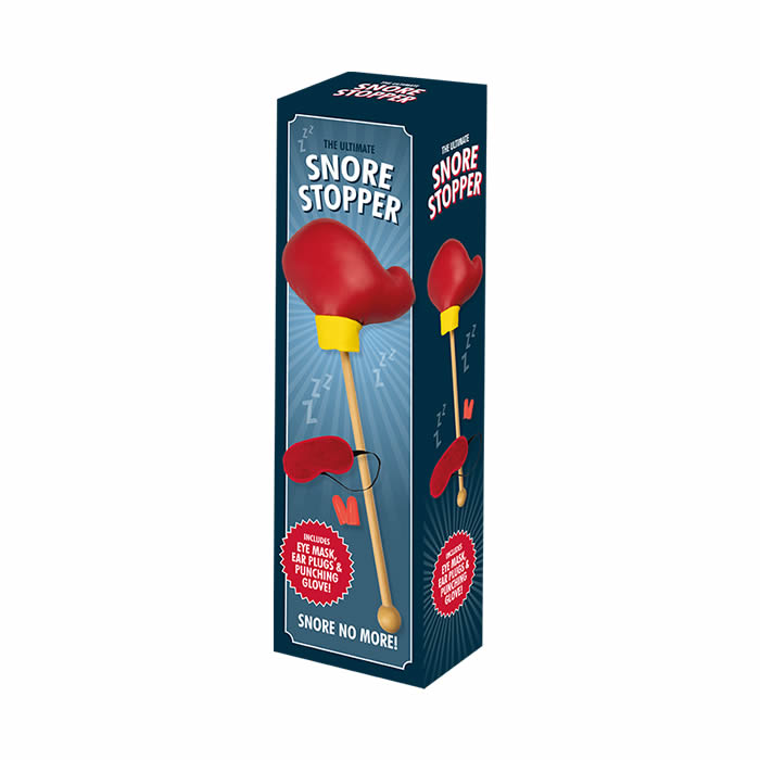The ultimate snore stopper is complete with an eye mask, earplugs and punching glove.