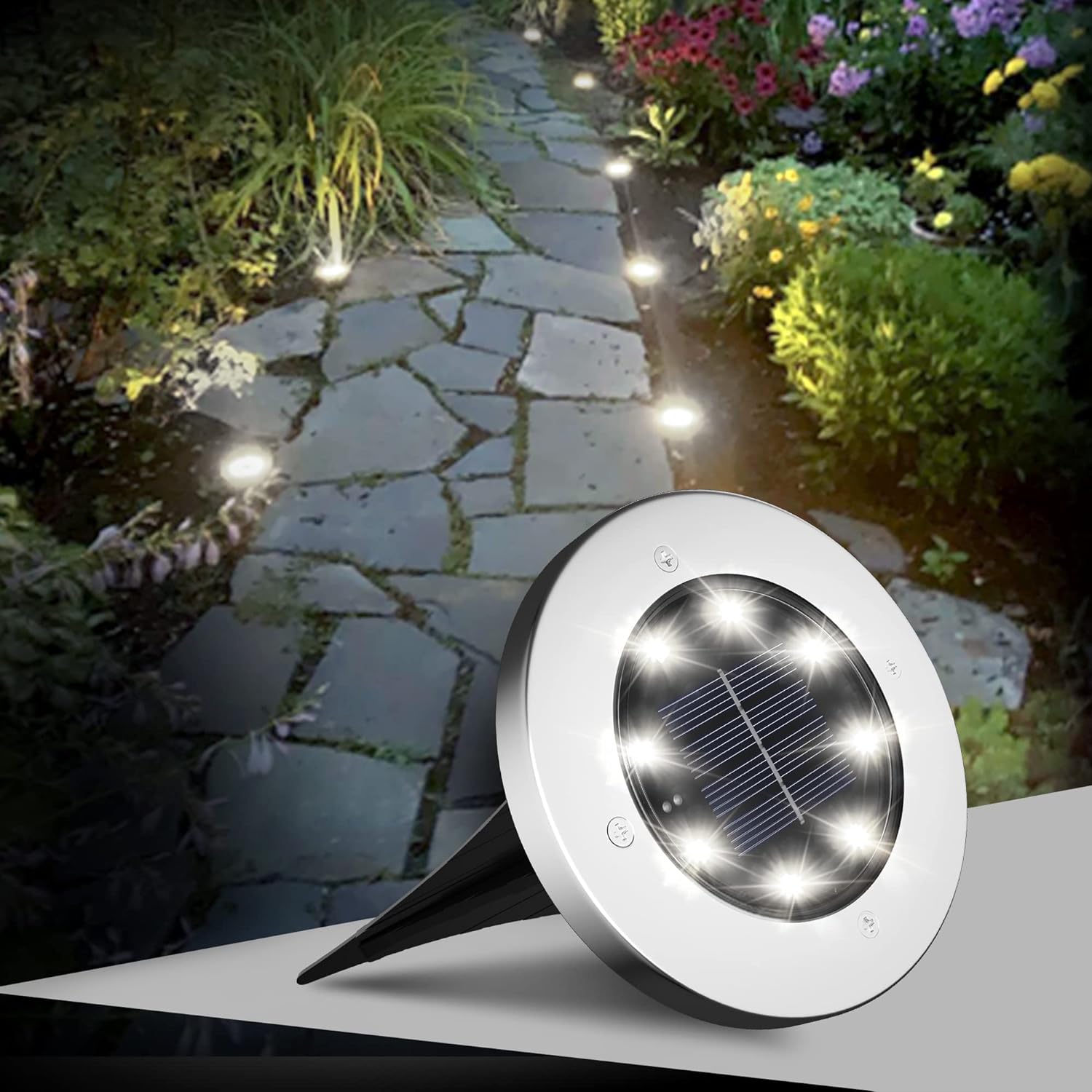 This solar garden light charges with solar energy during the day and provides power for the 8 built-in LED lamps at night. After 8 hours of full charging, the solar lights can work for 6-8 hours.