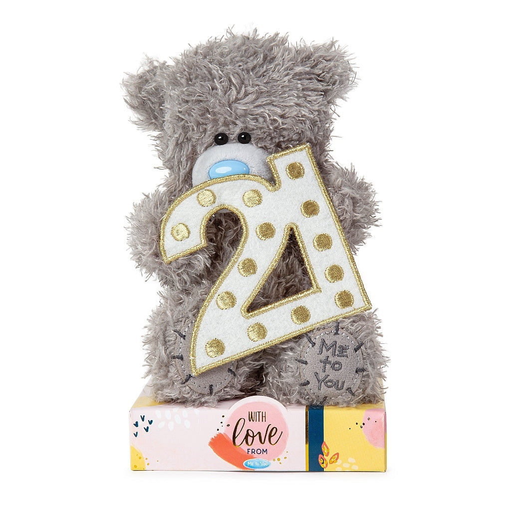 This gorgeous plush bear is the perfect gift for anyone celebrating their milestone 21st birthday. Cute Tatty Teddy is holding a white number 21; the lightbox-effect design gives a stylish contemporary twist to this lovely cuddly gift that's sure to be adored by your friend, family member or anyone celebrating their big day. Every single Me to You bear is made with love, featuring hand-sewn patches and a cute blue nose.