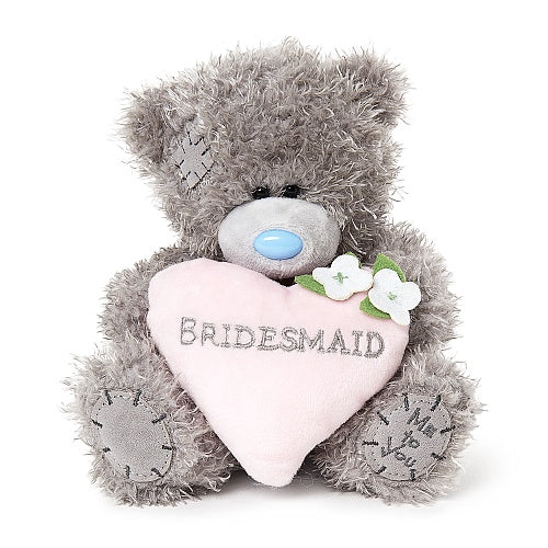 - Cute Tatty Teddy bear holding a pink love heart with 'Bridesmaid' embroidered