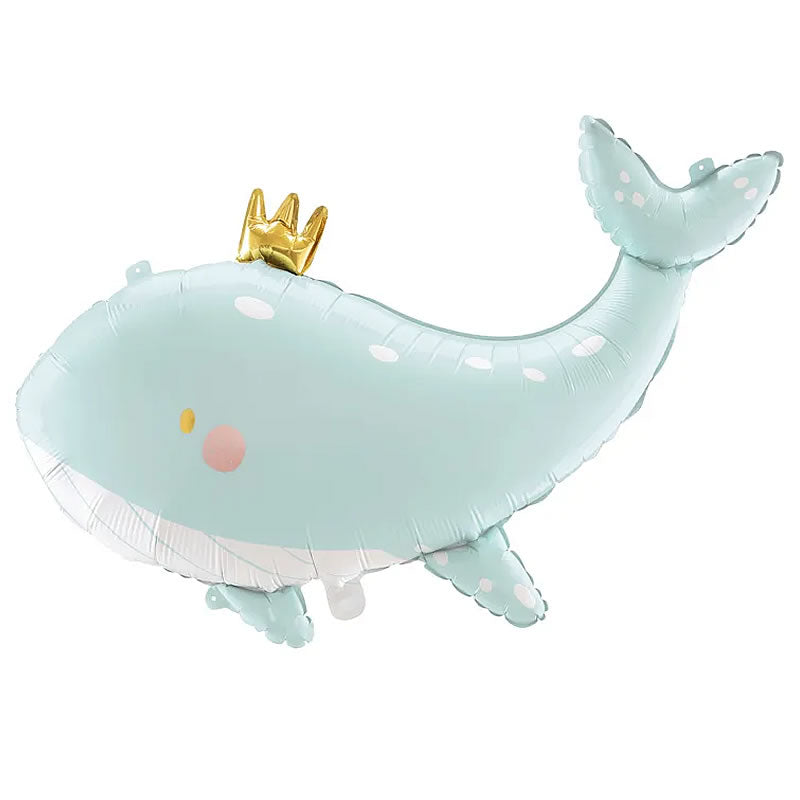 Add some whimsicle magic to your party with this gorgeous whale balloon with gold crown. The perfect Nautical Delight for Baby Showers, Birthdays, and other celebrations.